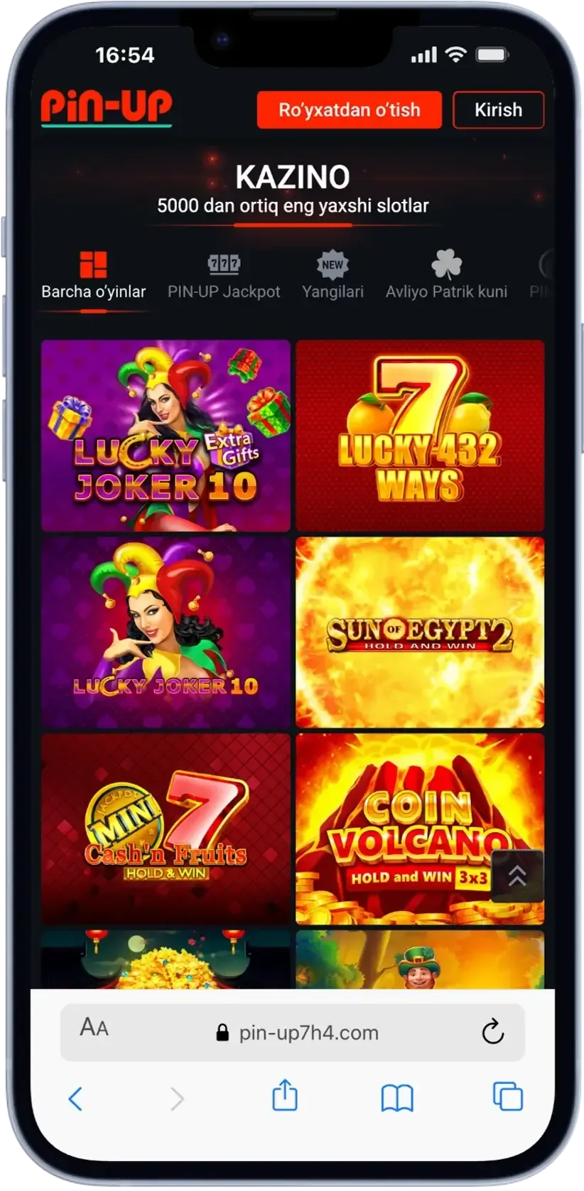 O‘zbekistonlik o‘yinchilar pinup-uzkirish.com orqali Pin Up platformasiga kirib, minglab slotlar, live dilerli o‘yinlar, ruletka, blackjack, bakara va crash o‘yinlaridan bahramand bo‘lishlari mumkin. Pin up uz foydalanuvchilari Aviator, Coin Volcano, Chicken Road 2, Sun of Egypt 2, More Magic Apple kabi mashhur o‘yinlarni ham topishadi.